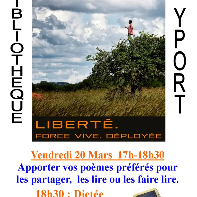 17h - 18h30 : Apportez vos poèmes préférés pour les partager, les lire ou les faire lire.